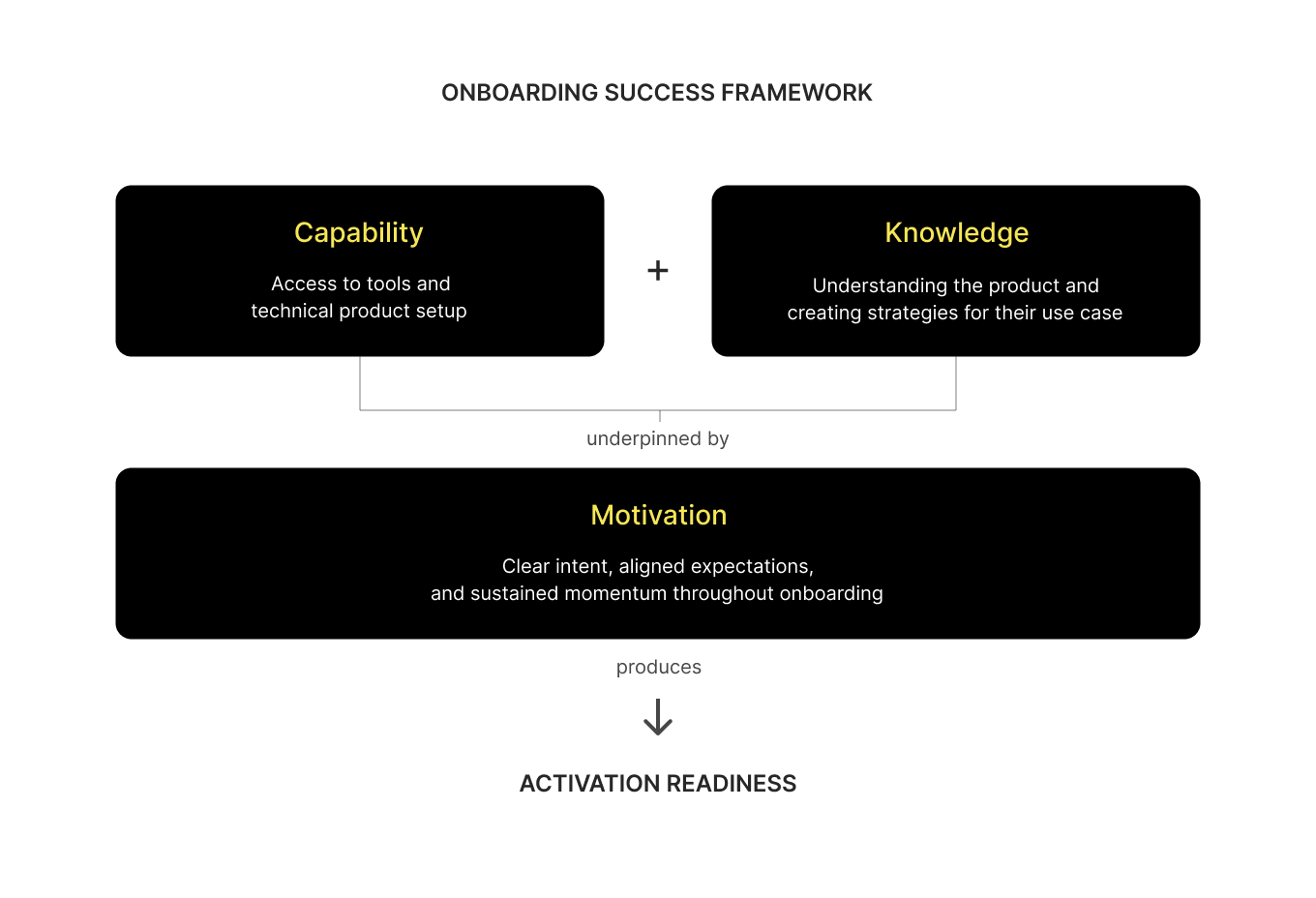 To address it, I developed an Activation Readiness framework which redefines onboarding success as comprising of three parallel dimensions – capability, knowledge, and motivation, rather than a single technical milestone. This reframing shifted the design question from "how do we get the phone number enabled faster?", which is tied to external dependencies, to "how do we ensure that by the time the number is ready, so is the marketer?".
